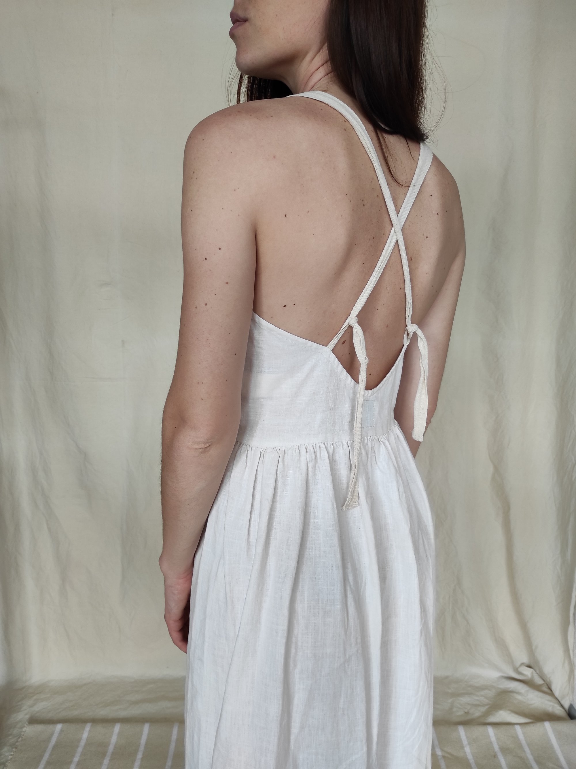 Cette robe Cerise en lin est produite en série limitée. Le lin est tissé dans Les Vosges.