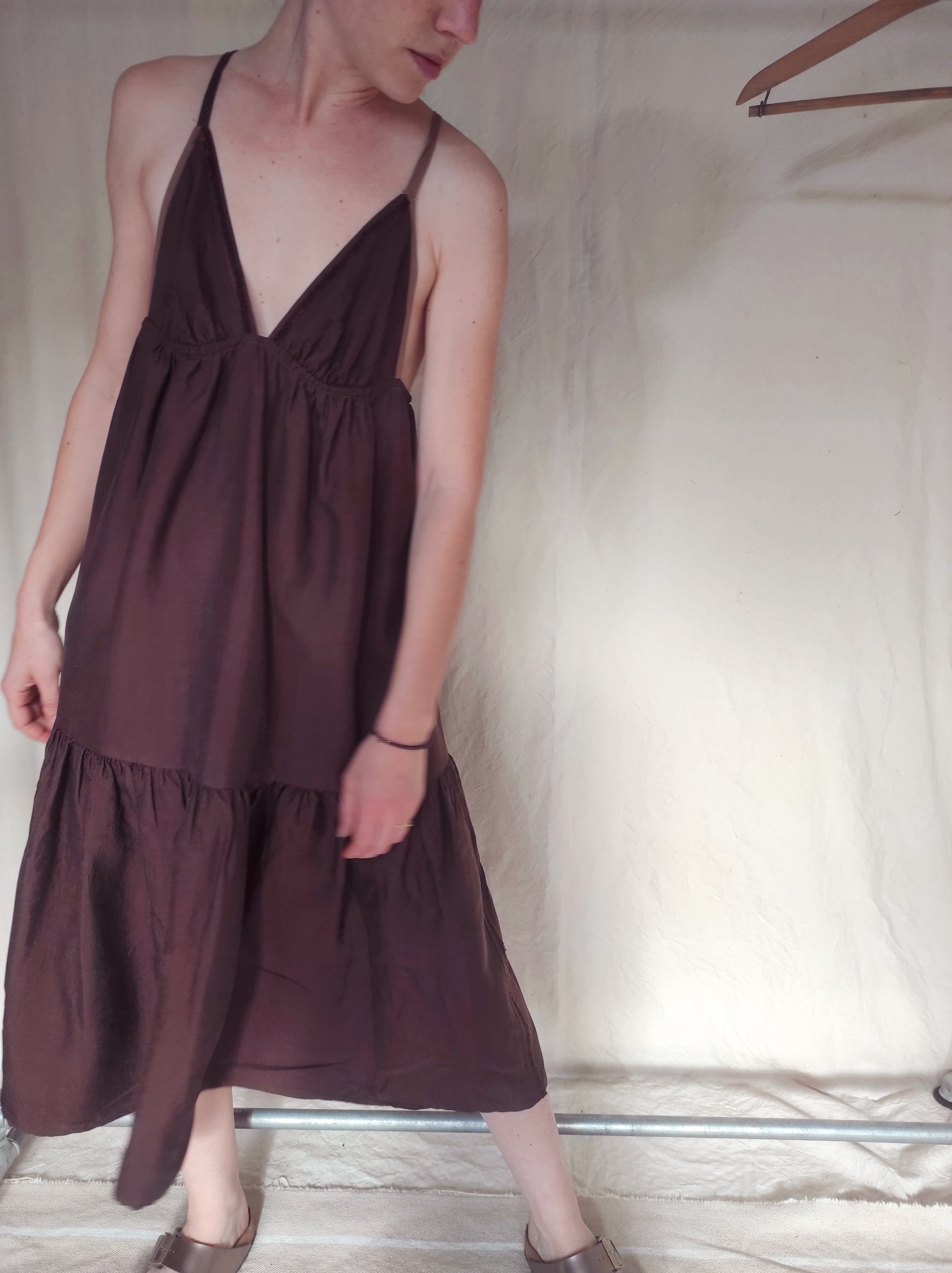 Robe à bretelles en soie . Matières issues de stocks dormants.