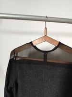 Pull en laine anthracite et ses détails en soie noire. Matières première issues de deadstock.