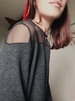 C'est un pull léger car toute la partie d'paule et de décolletée est en crepe de soie. Il peut se porté avec un top a bretelle dessous.